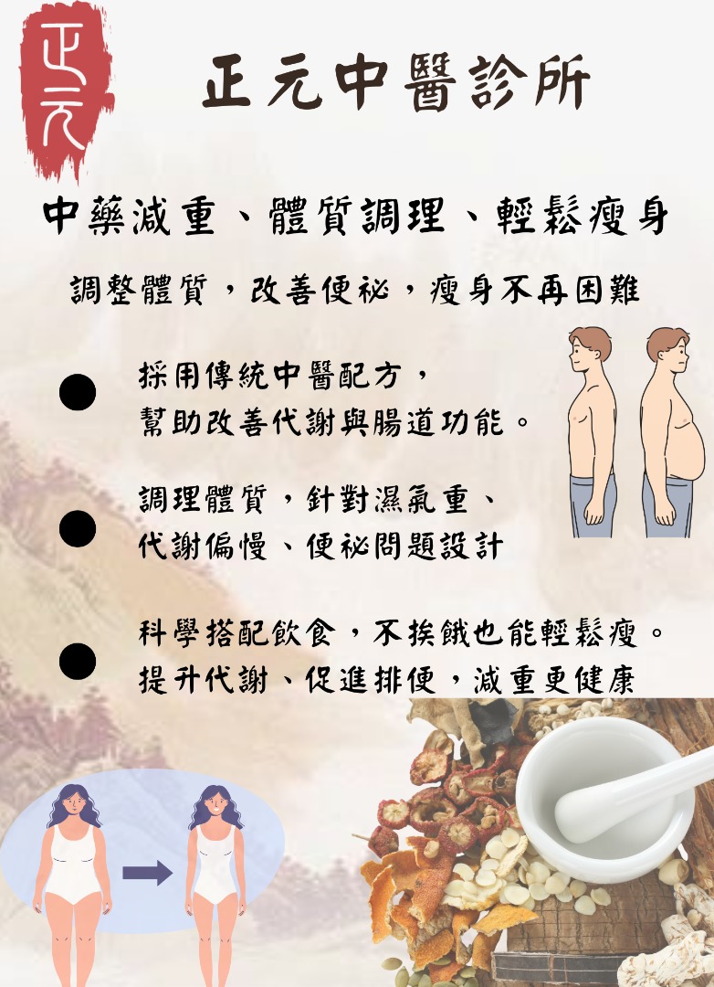 中醫減重、體質調理、輕鬆瘦身、調整體質,改善便秘。